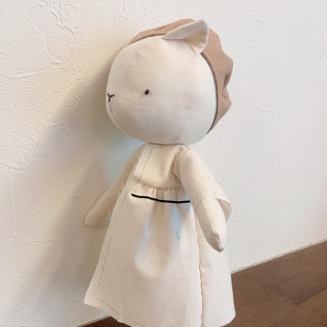 人間の服作りと同じように、シーチング(サンプル用の生地)でサンプルを作り、フィッテイングして修正をする。
